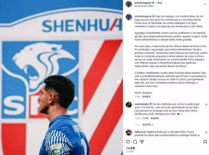 中国足坛的争议事件又闹大了。上海申花离队的巴西外助安德烈-路易斯在叮咛平台炮轰俱乐部处理层,并暗意我方和家东说念主王人受到了球队庄重东说念主失仪对待,毫无管事精神。行动前葡超盛名外助,这件事的影响力终点大,他本东说念主也还是鸿沟驳倒,他提到的3个细节值得咱们接洽一下。